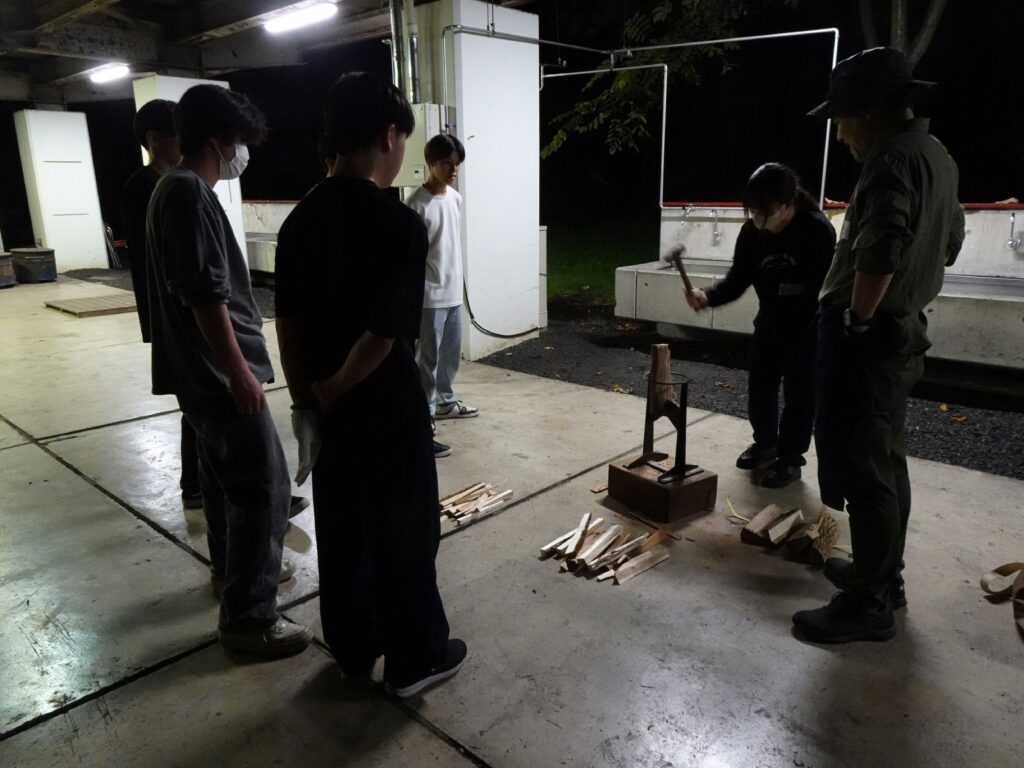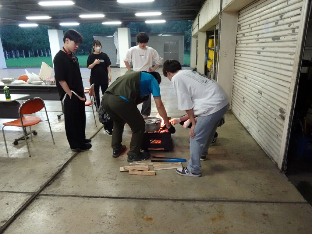 今年の学生は、何事にも興味関心が高く、初めての薪割りや火起こし、野外炊事など、積極的かつ協力して取り組んでいました。ぜひ、そのまま秋セメのグループ活動につなげてほしいものです。