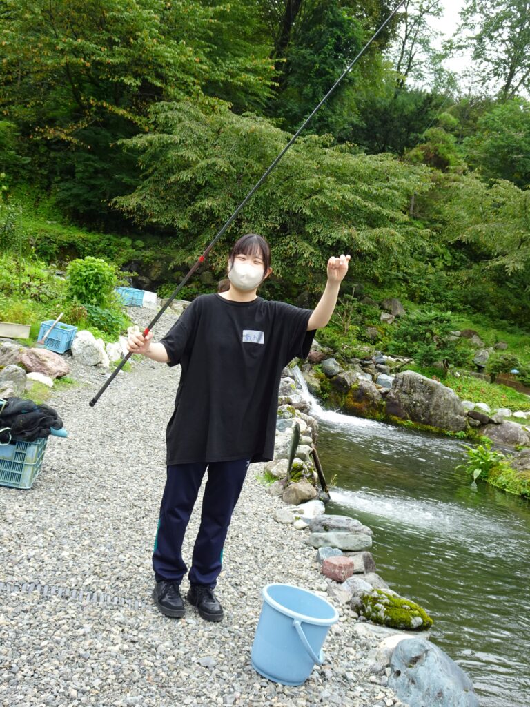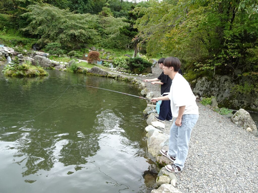 その後は乗田養魚場で、釣りをした後、乗田氏から都会で働くこと、田舎で暮らすことなど、これから迎える就活についての参考になるお話を聞くことができました。